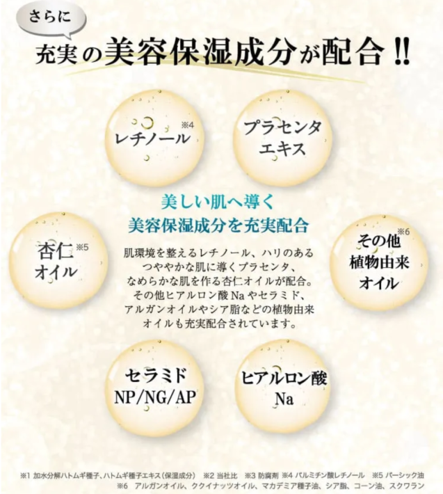さらに「杏仁オイル」や「ヒアルロン酸Na」など